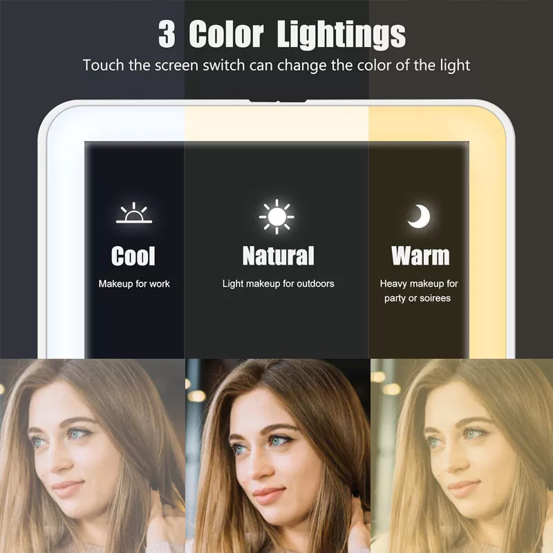 इस टेबलटॉप एलईडी मेक अप मिरर में सभी मेकअप परिदृश्यों के अनुरूप तीन समायोज्य प्रकाश मोड (ठंडा, प्राकृतिक, गर्म) हैं। कार्यस्थल पर मेकअप के लिए ठंडी रोशनी, बाहरी लुक के लिए प्राकृतिक रोशनी और शाम के कार्यक्रमों के लिए गर्म रोशनी आदर्श है। नरम, झिलमिलाहट-मुक्त एलईडी रिंग वास्तविक रंग प्रतिपादन प्रदान करती है, जो मंद वातावरण में भी सटीक मेकअप अनुप्रयोग सुनिश्चित करती है।