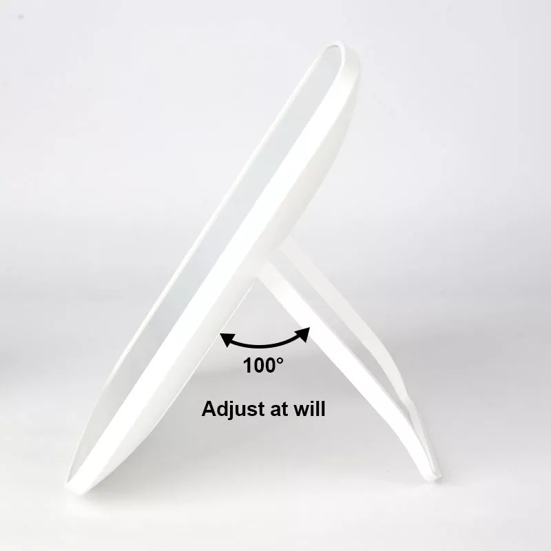 100° तक समायोजित होने वाले फोल्डेबल स्टैंड से सुसज्जित, यह दर्पण आरामदायक मेकअप, त्वचा की देखभाल या सौंदर्य के लिए लचीले देखने के कोण प्रदान करता है। स्थिर त्रिकोणीय आधार दर्पण को सुरक्षित रूप से अपनी जगह पर रखता है, जबकि पतला, हल्का डिज़ाइन इसे मोड़ना और ले जाना आसान बनाता है, जो यात्रा या चलते-फिरते टच-अप के लिए बिल्कुल उपयुक्त है।